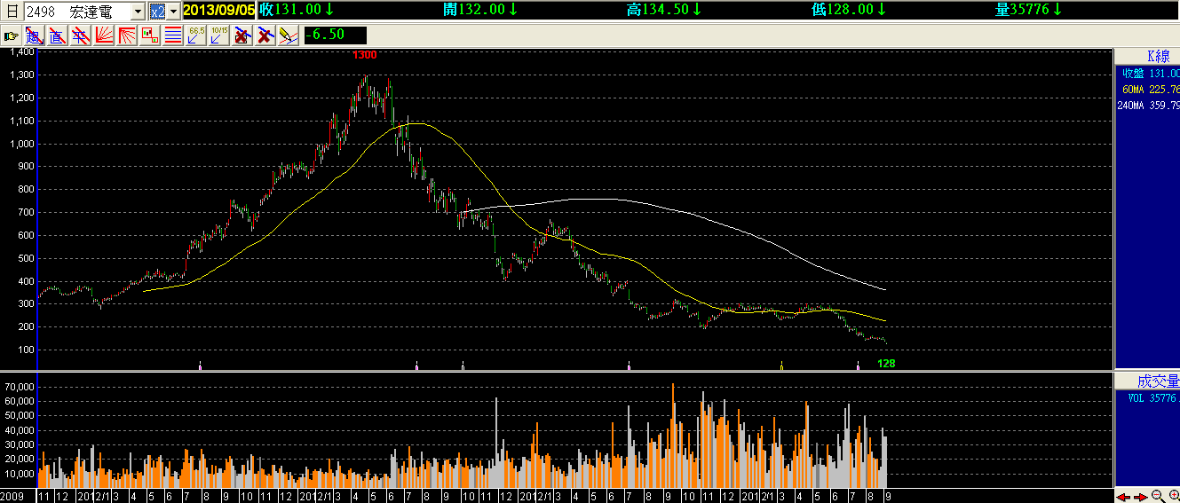 讀者一定會說,操作真的有那麼難嗎?真的要如此保守嗎?親愛的讀者,cola再舉一個例子。曾經是台灣之光的宏達電,被媒體專家捧上天的經營團隊,也是股民的最愛。短短兩半年不到,股價從最高點跌到剩下不到1/10的價位。請問讀者,投資人情何以堪。讀者一定會說,這麼明顯的跌勢,還會有人買嗎?這麼明顯的跌勢,即使真的買了,也早就出場了,怎麼可能還留到現在呢?親愛的讀者,cola曾經發生重大虧損,所以我深知投資人的股市心理。如果這麼容易認賠殺出,還會有人發生重大虧損嗎?有人說:「錯誤的決策比貪污更可怕」。cola這些年在這一行的所見所聞也領悟到一句話:「不當的投資比不投資更糟糕」。親愛的讀者,當局勢不利於己的時候,不做投資就是最好的投資。